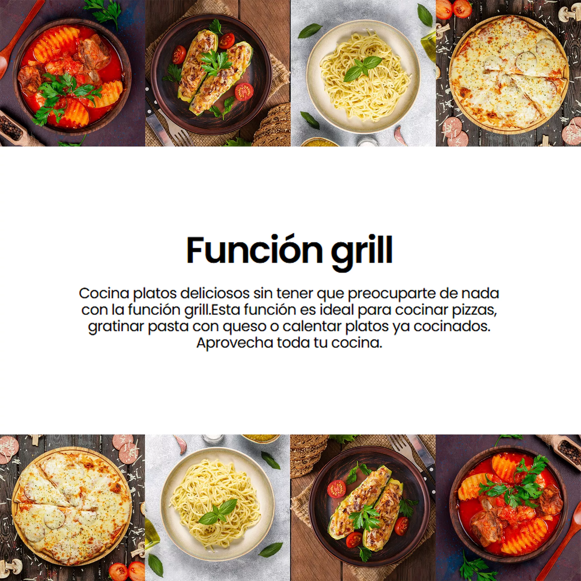 • Zonas de cocción: 3 zonas independientes para preparar varios platos a la vez con control preciso.