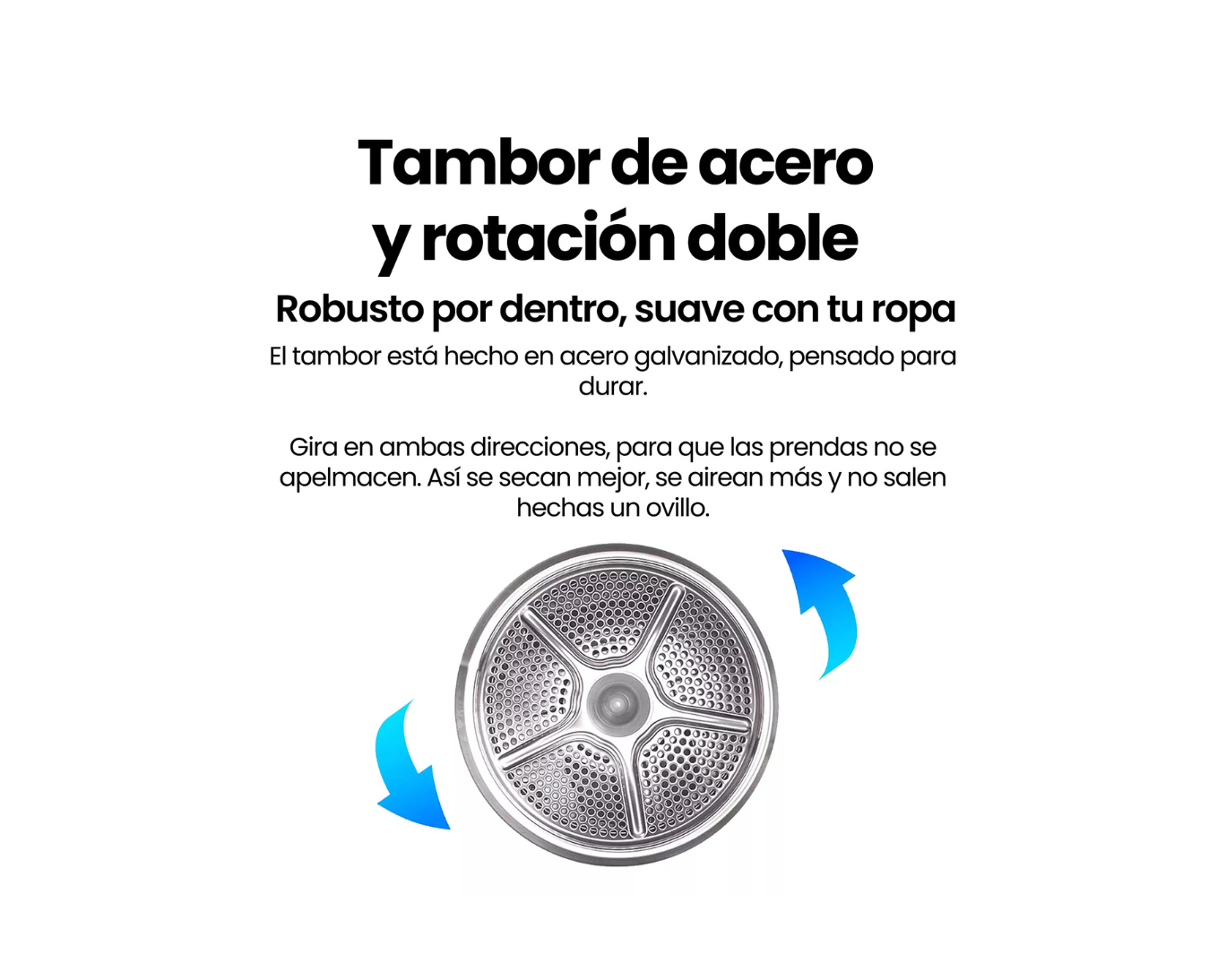 Robusto por dentro, suave con tu ropa. El tambor está hecho en acero galvanizado, pensado para durar.